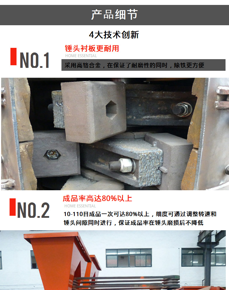 ,其节电降耗、操作方便,工作平稳、易于启动、设备紧凑、破碎比大、比同类产品综合效果要好。该机设计五位一体。即:高线速度、耐磨件材质、机体结构、篦板的设计、钢性硬挤压破碎的影响,实现了有效控制出料粒度长期稳定。广泛用于各种硬度物料中碎、细碎作业。